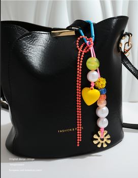 2025 nuevo corazón hecho a mano imitación perla bolsa dijes llaveros dibujos animados creativo Color cuentas amor colorido llavero colgante