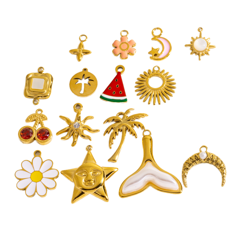 Ciondoli in acciaio inossidabile impermeabili in smalto estivo charm Daisy Star Cherry Fish luna Cz charm per te