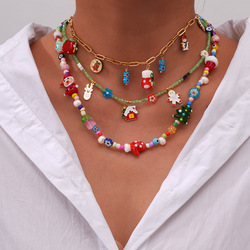 クリスマス天然石ビーズサンタクロースチャームネックレスステンレスエナメルツリーフラワーブーツペンダントネックレス2025新品